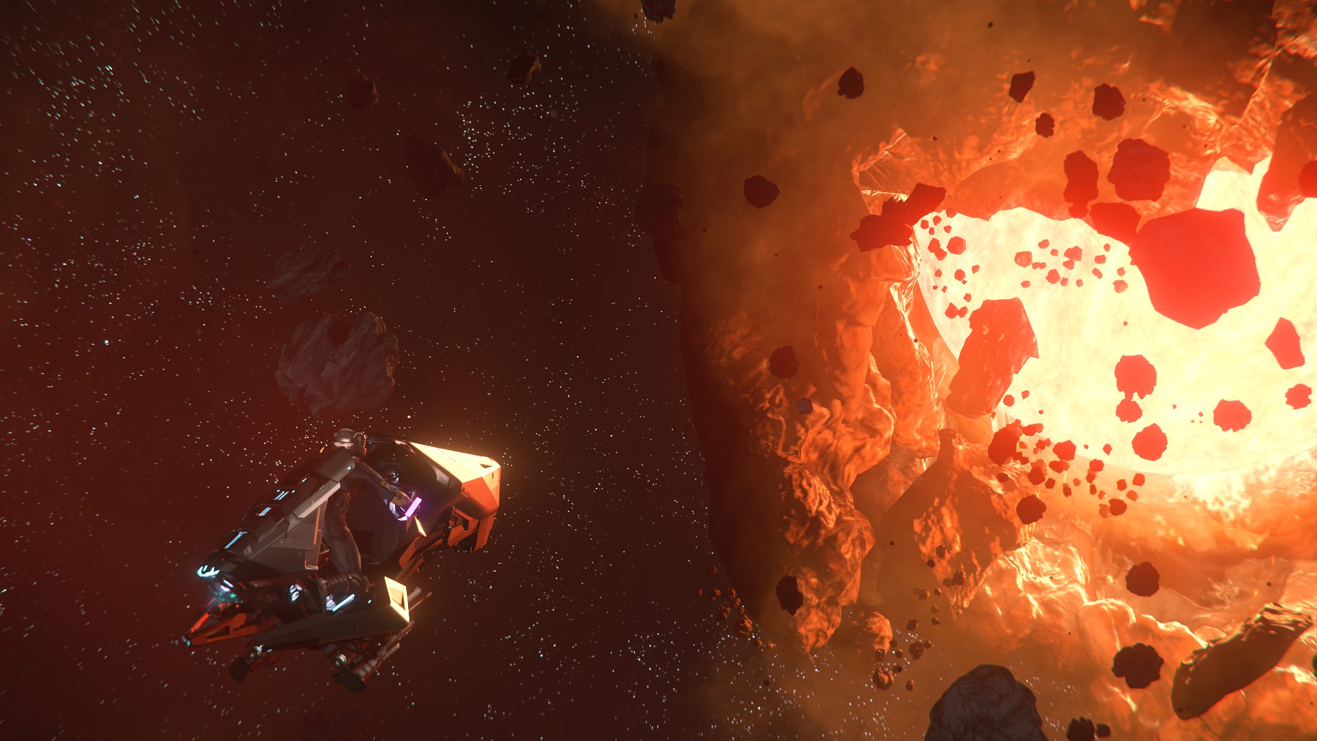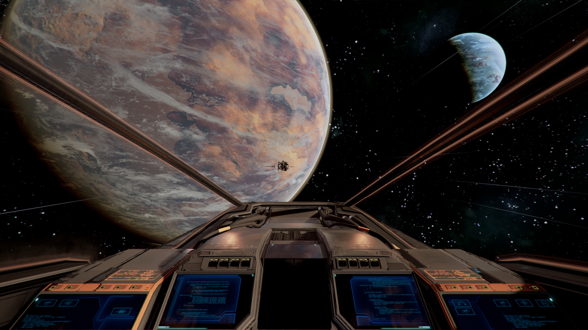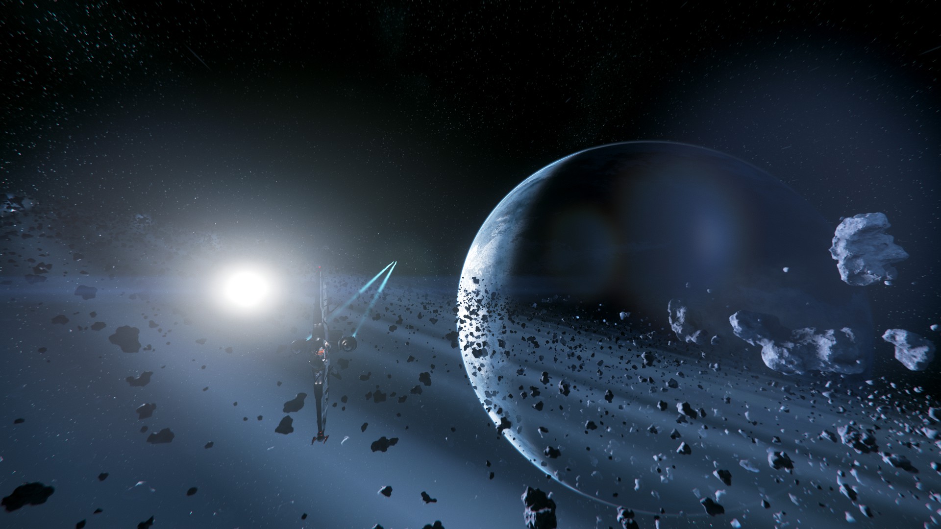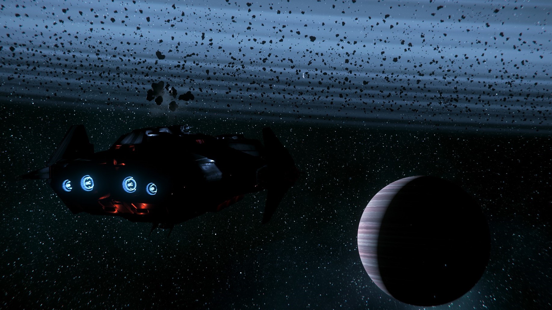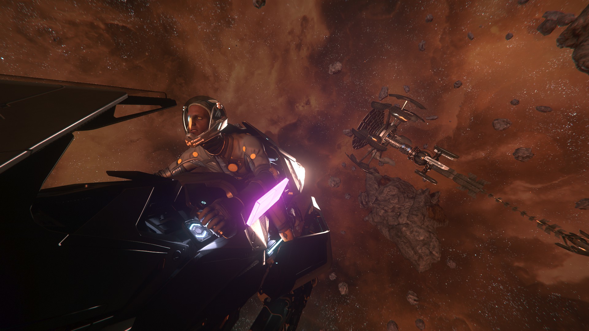 Je n’étais pas super fan du design au départ, mais au final, ça passe bien, et les différences d’échelles sont plutôt impressionnantes, peut-être pas autant que dans Elite, mais passer d’un petit explorateur a un vaisseau mineur, même « petit », ça fait son petit effet