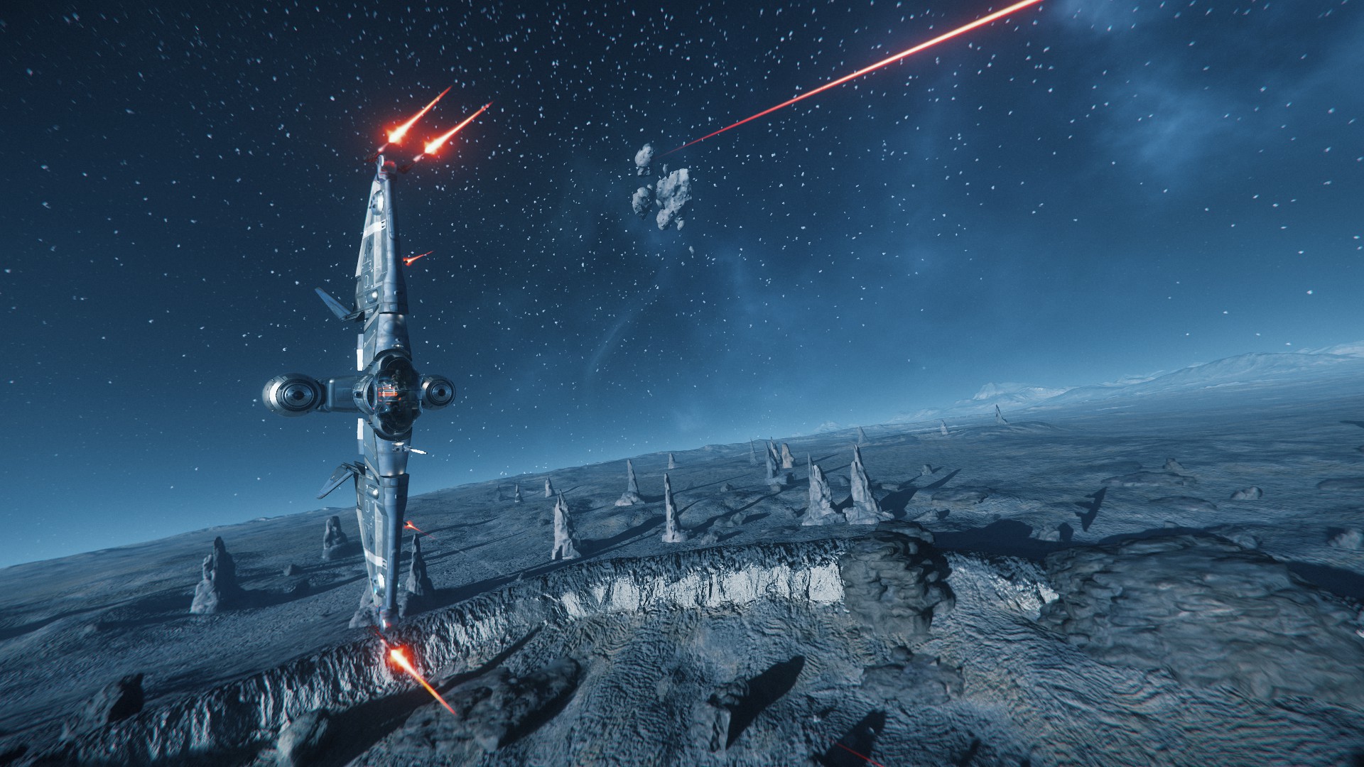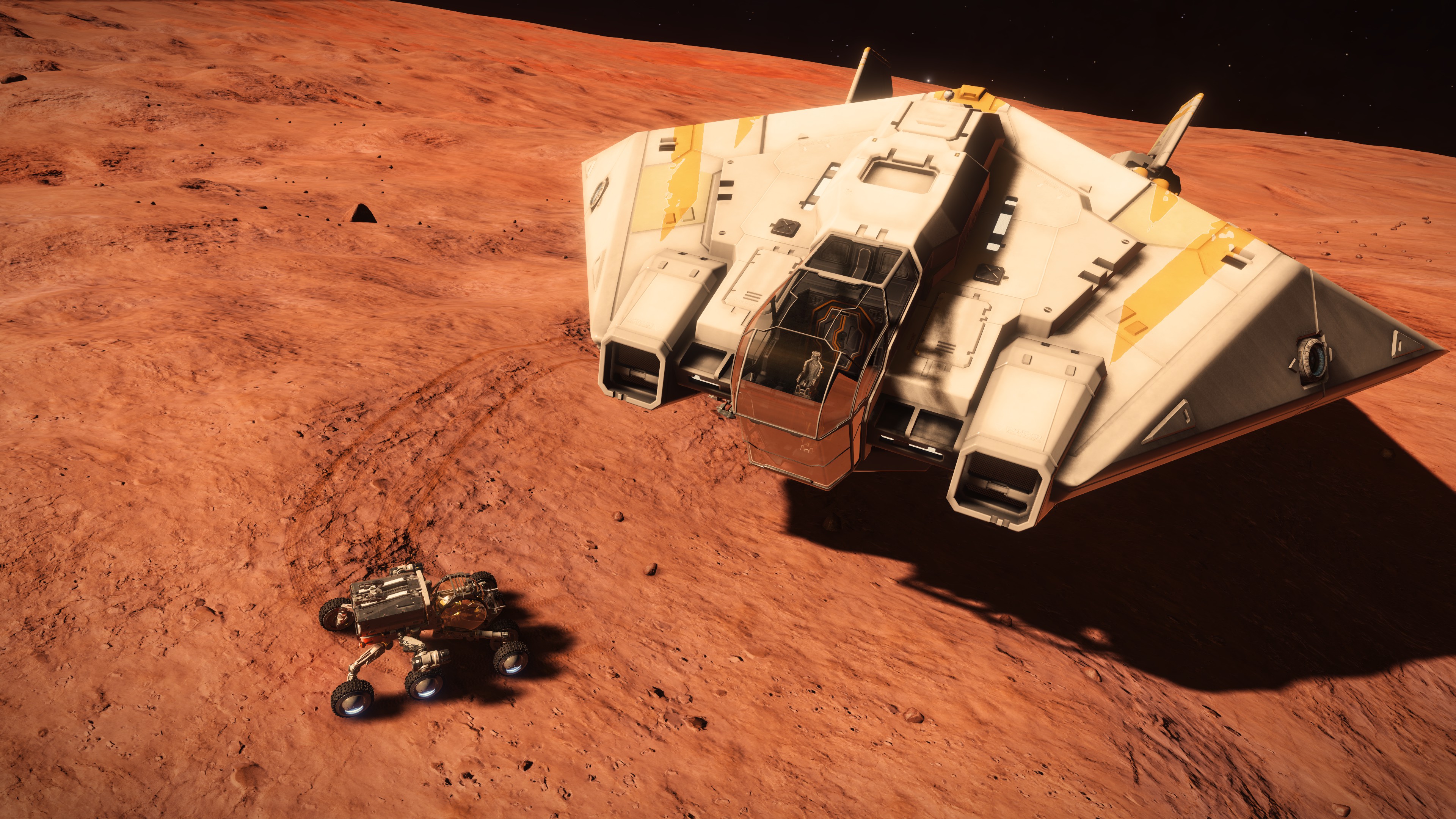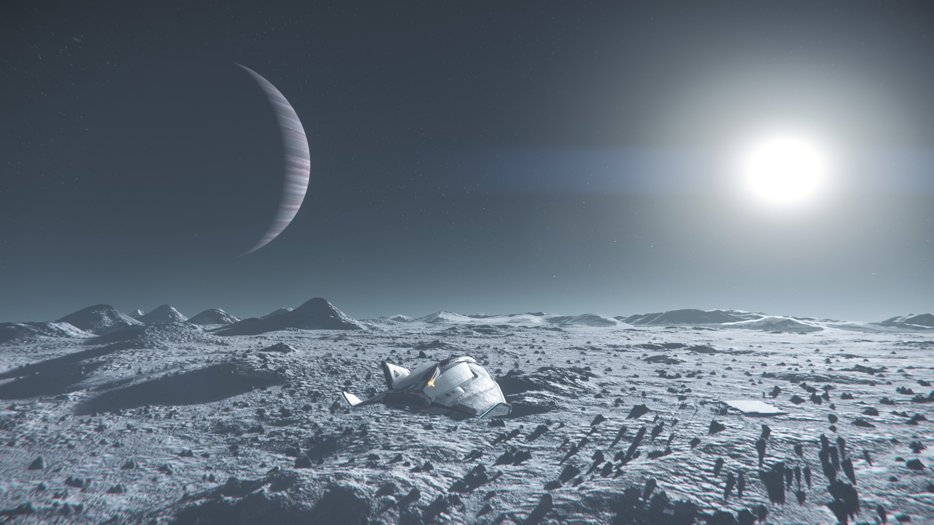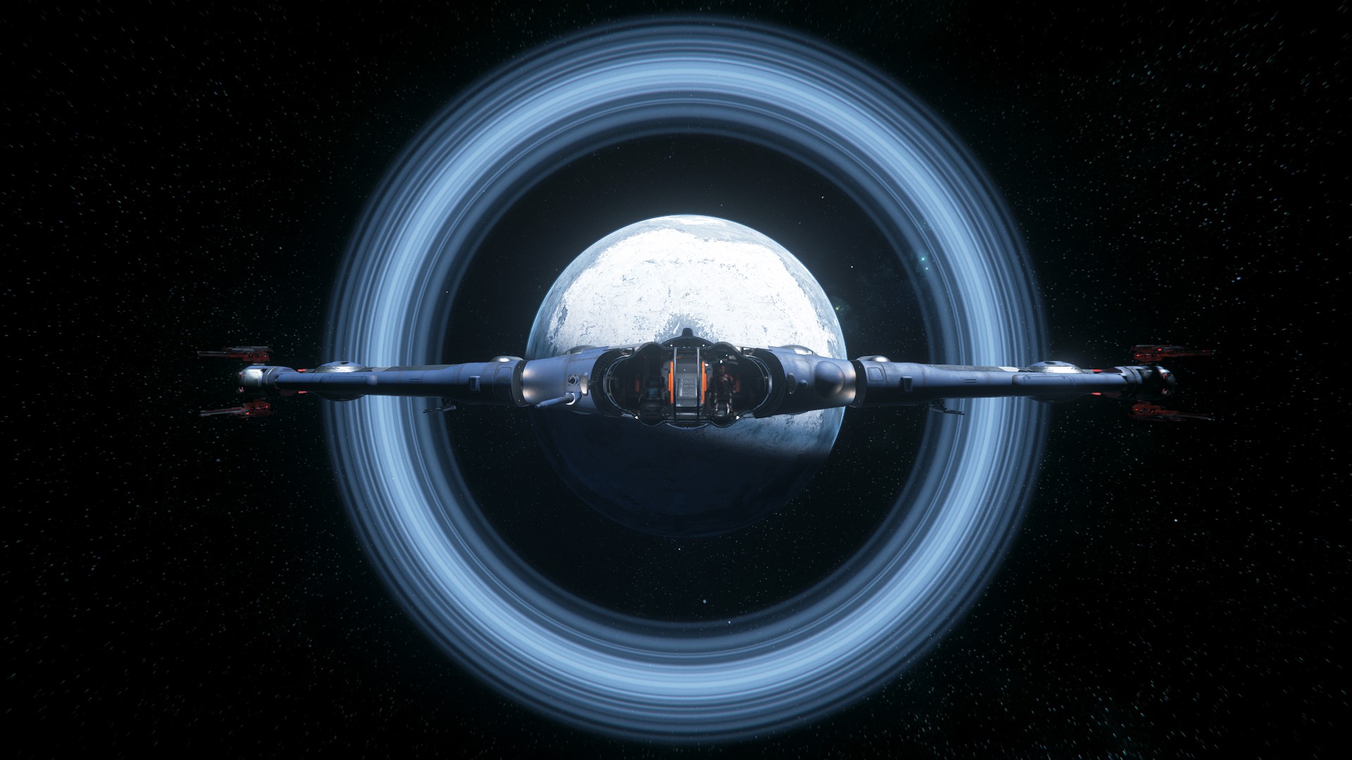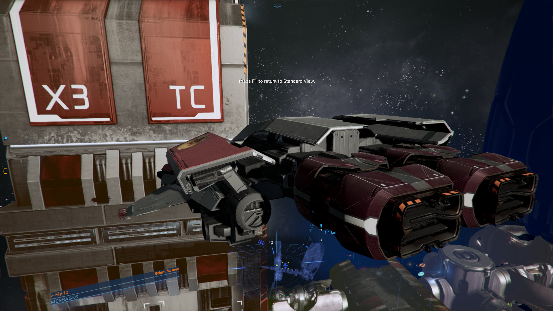 Je n’étais pas super fan du design au départ, mais au final, ça passe bien, et les différences d’échelles sont plutôt impressionnantes, peut-être pas autant que dans Elite, mais passer d’un petit explorateur a un vaisseau mineur, même « petit », ça fait son petit effet