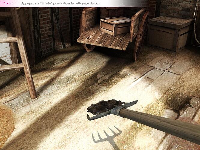 heureusement que le jeu nous dit sur quelle touche appuyer pour nettoyer le boxe… Ce serait domage de rester coincé dans un boxe sale :ane: