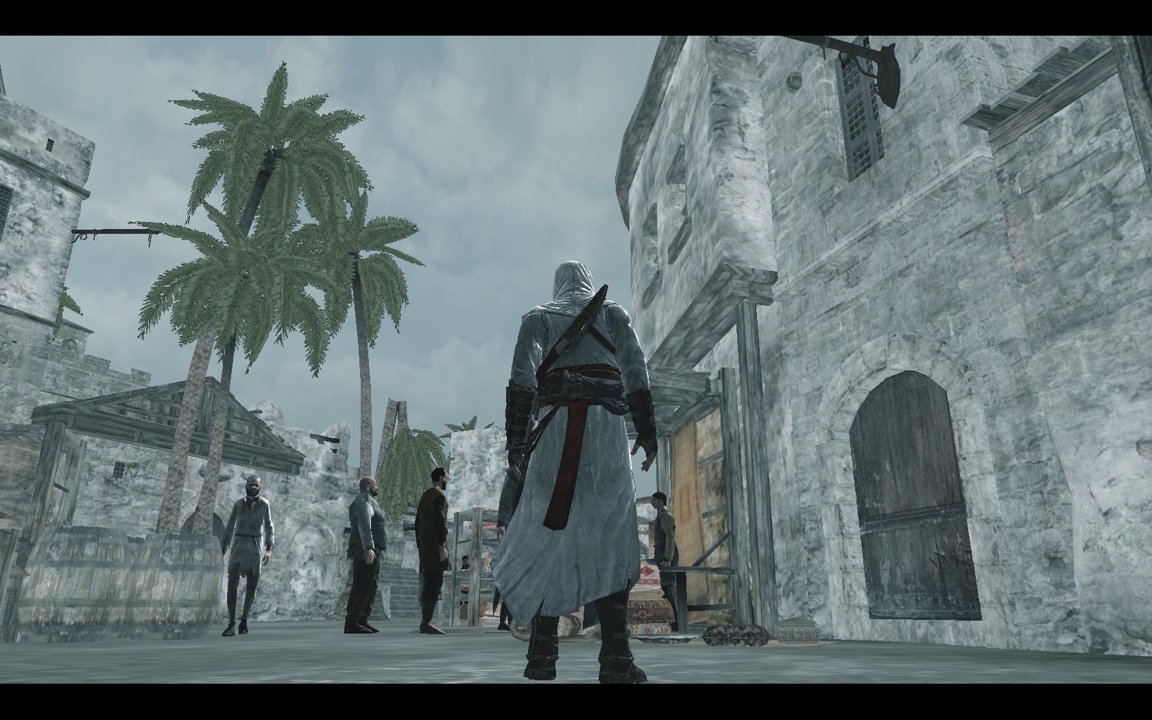 J’ai en fait volontairement mis le jeu tout en minimum sur les screenshots non mis en spoilers juste pour le fun. Je voulais voir ce que le jeu donnait en mettant tout au minimum et je trouve que ça se rapproche assez des derniers PoP (la série PS2) sans les effets de lumières quand même. Le pire c’est que Altaïr jure parmi tous ces polygones vu que lui reste fortement détaillé.