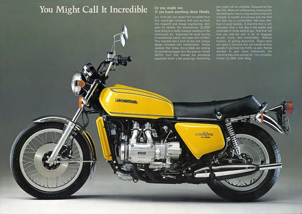 La première Gold Wing GL 1000, c’était ça, il fallait être un peu fêlé pour monter des guidons bracelets sur une bécane pareille ![]()