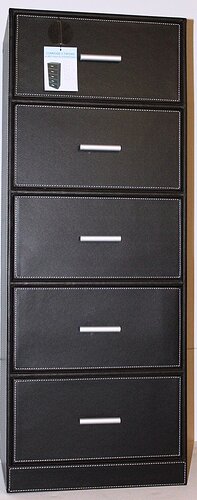 sur amazon, pour l’entrée de l’appart : Meuble de Rangement 5 Tiroirs Format A4 Simili Cuir Marron