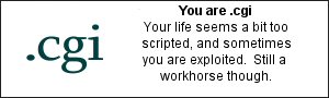 Je me suis aidé d’un dictionnaire pour le faire est mon résultat est .cgi http://www.bbspot.com/News/2004/10/extensi…uiz_results.php